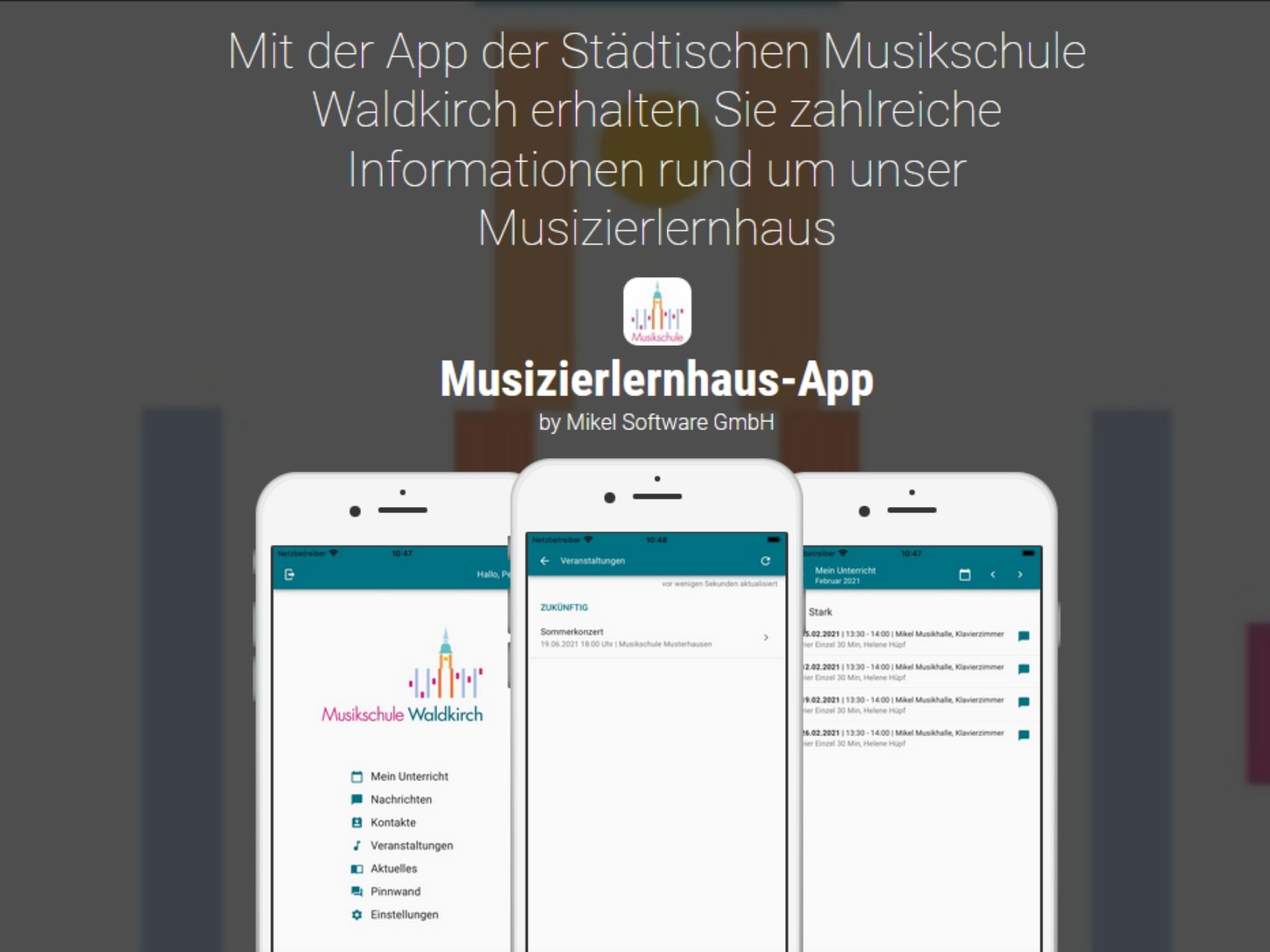 Sobald Sie oder Ihr Kind an unserer Musikschule angemeldet sind, erfolgt die gesamte Kommunikation bequem über unsere Musikschul-App „Musizierlernhaus“. Ob Nachrichten an Lehrkräfte, aktuelle Informationen, Terminänderungen oder wichtige Dokumente – alles finden Sie zentral an einem Ort. So bleiben Sie stets informiert und können unkompliziert mit Verwaltung und Lehrpersonen in Kontakt treten.